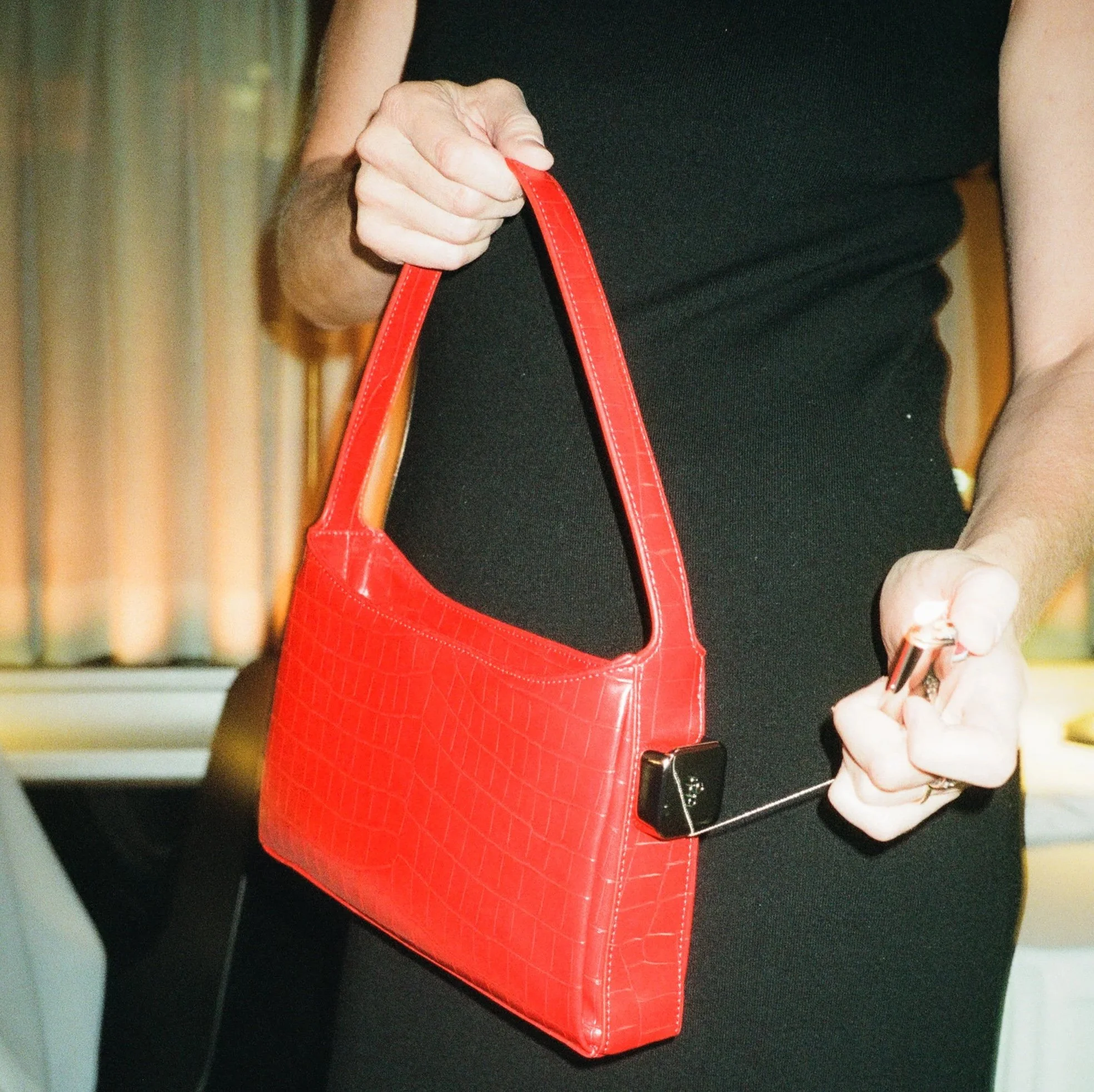 A lot of my inspiration starts with something old. The bags draw from the post WWII period in America, where we were setting fashion trends globally, using all these innovative materials. Back in the day, it wasn’t fashion designers who made acrylic brands, it was these guys that worked in car manufacturing who had access to new materials and were playing around with them. I love the sense of craftsmanship that comes from all these unexpected materials and unique color combinations. When I’m thrifting or antiquing, and I find a weird ashtray object, or a cigarette holder, I think about how we can make that feel like Edie Parker. How can we update a vintage object, modernize it and customize it, to meet our audience’s needs?